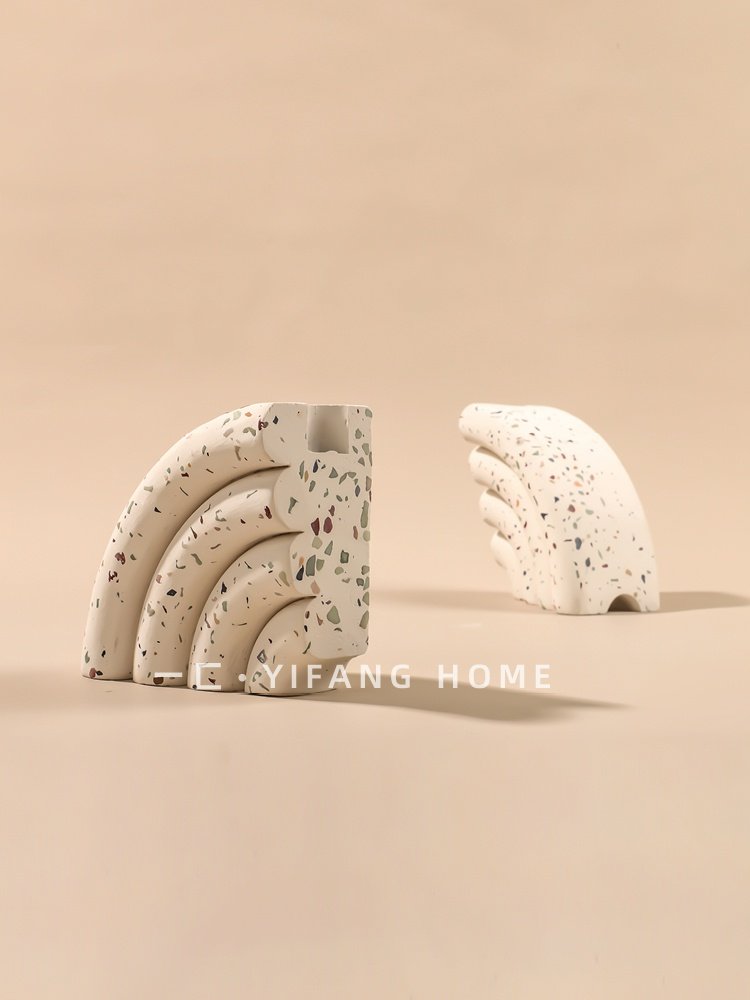简约现代轻奢白色水磨石书挡书立样板间售楼处创意扇形摆件.热门设计联盟服务商