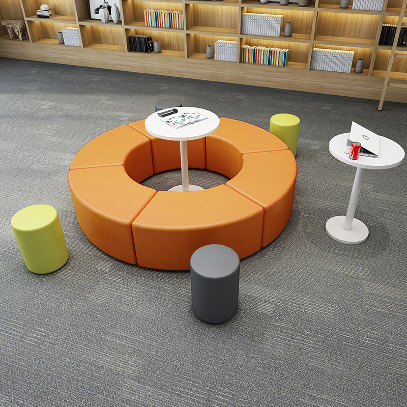 现代简约图书馆休息区幼儿园早教中心弧形创意模块化沙发组合坐凳热门设计联盟服务商